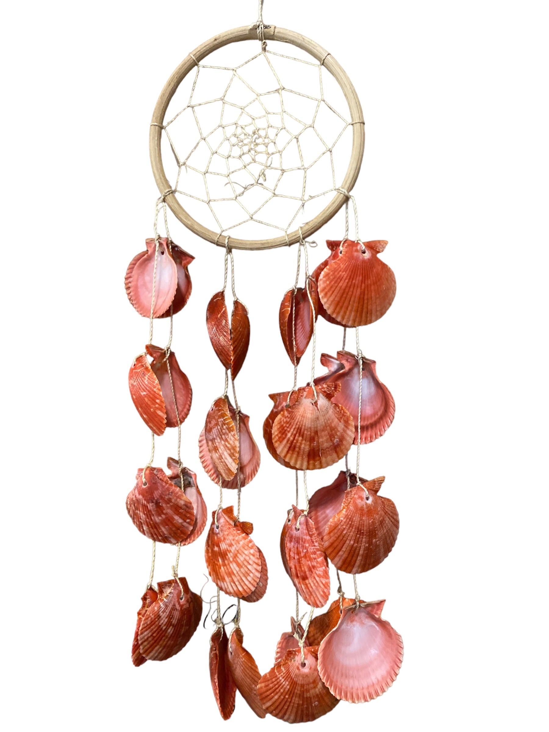 Dream Catcher Wind Chime - 6 inch Ring - with Red Pecten Scallop SEASHELLS - NEW723