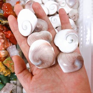 These Shiva Eye Shell Hearts are sold as randomly selected single pieces. They are approximately 1½x1½" and 1/2" thick and are convex on both sides.