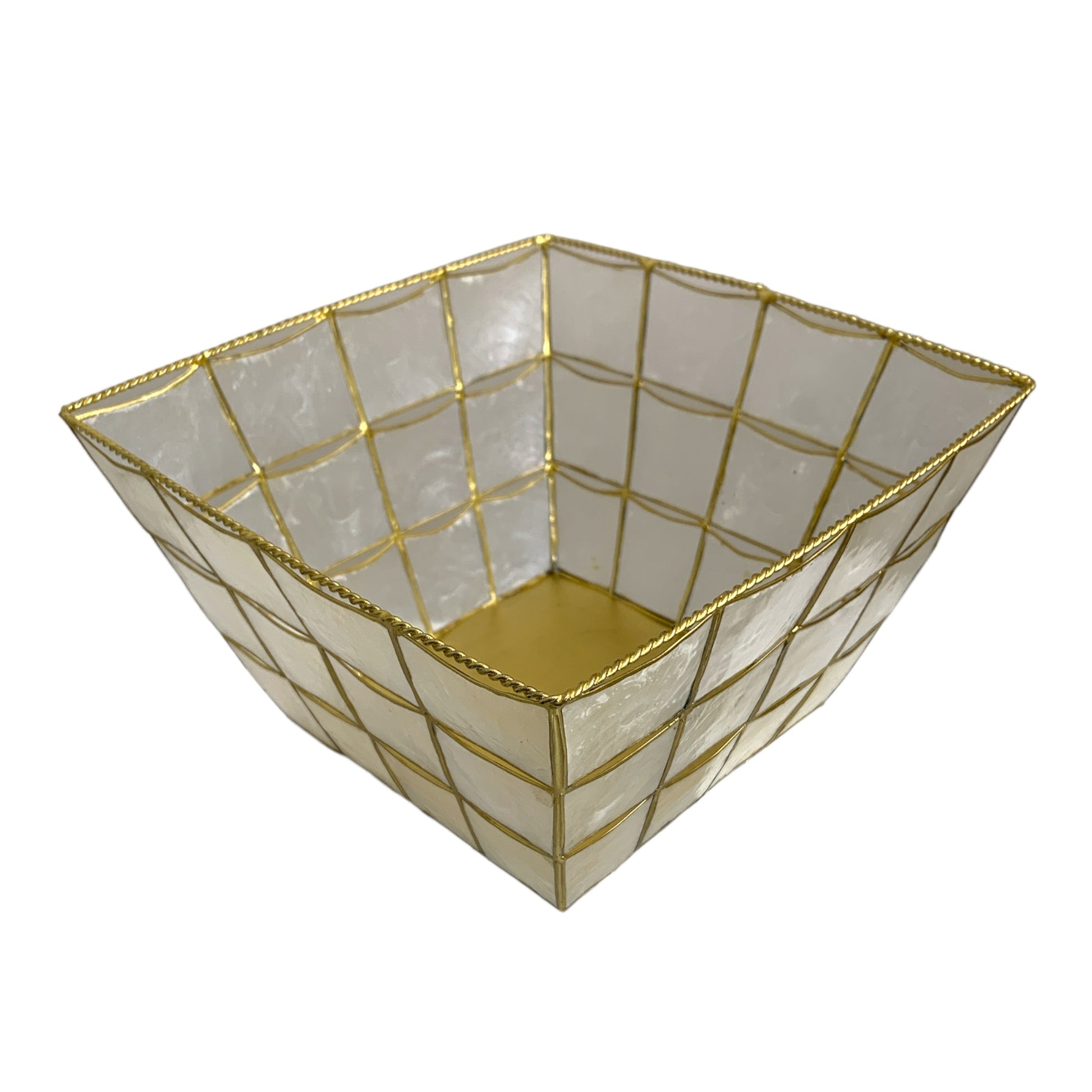 WHITE CAPIZ BASKET W/GOLD - SQUARE 9 inch dia